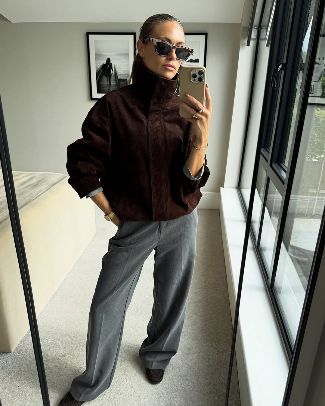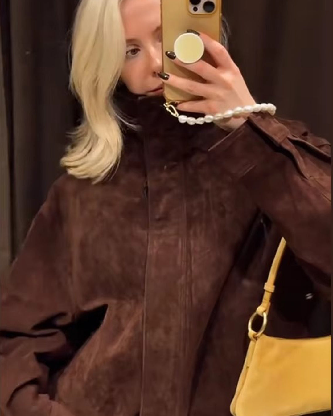 Kurtka z zamszu z kołnierzem stójką Viona