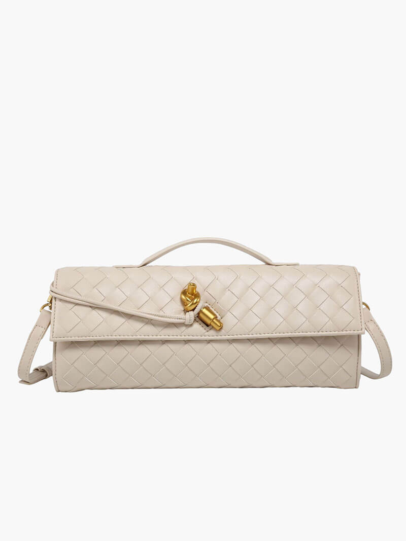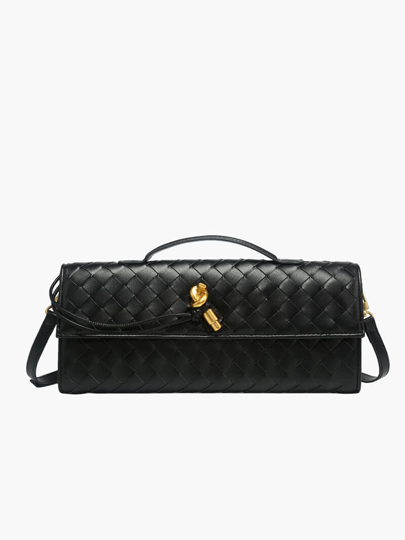 Introducing our Bianca Woven Bag, a sophisticated piece that showcases the house’s signature leather craftsmanship and meticulous attention to detail. Expertly crafted from premium vegan leather, it features a beautifully woven texture enhanced by a unique knot tie detail with a polished gold-tone toggle fastening, adding a touch of refined elegance. Its compact yet practical size is designed to fit your essentials — from your phone to a cardholder and lipstick — making it the perfect companion for events, dinners, and special occasions when you prefer to travel light. Combining timeless style with sustainable materials, the Bianca Woven Bag is a must-have accessory for the modern, eco-conscious wardrobe.