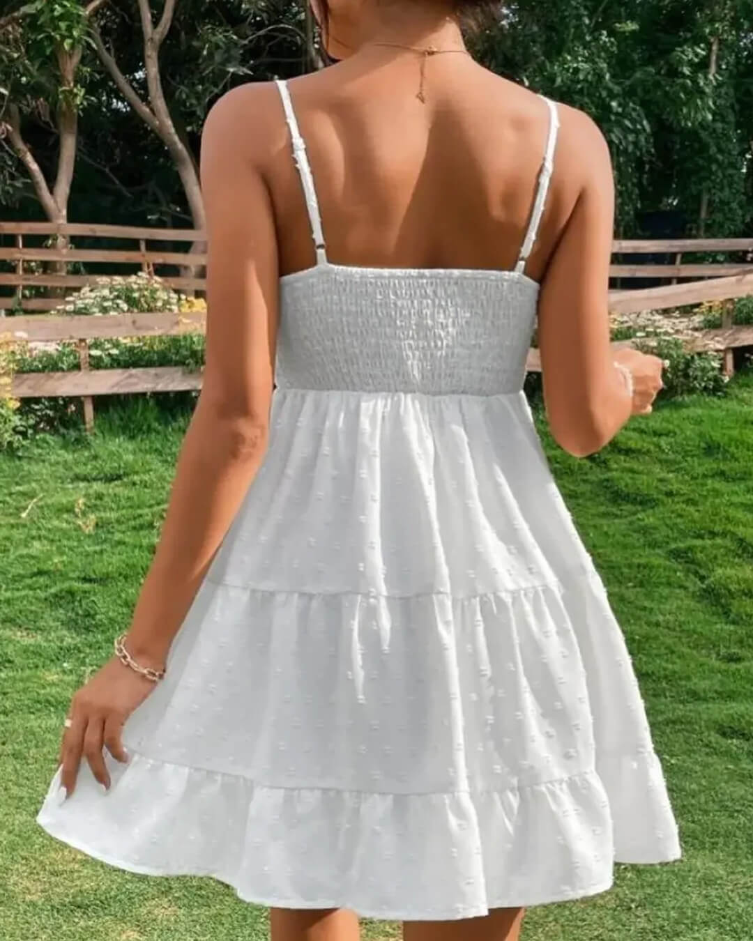 • Design: Babydoll-style mini dress with tiered ruffles and a flared hemline.