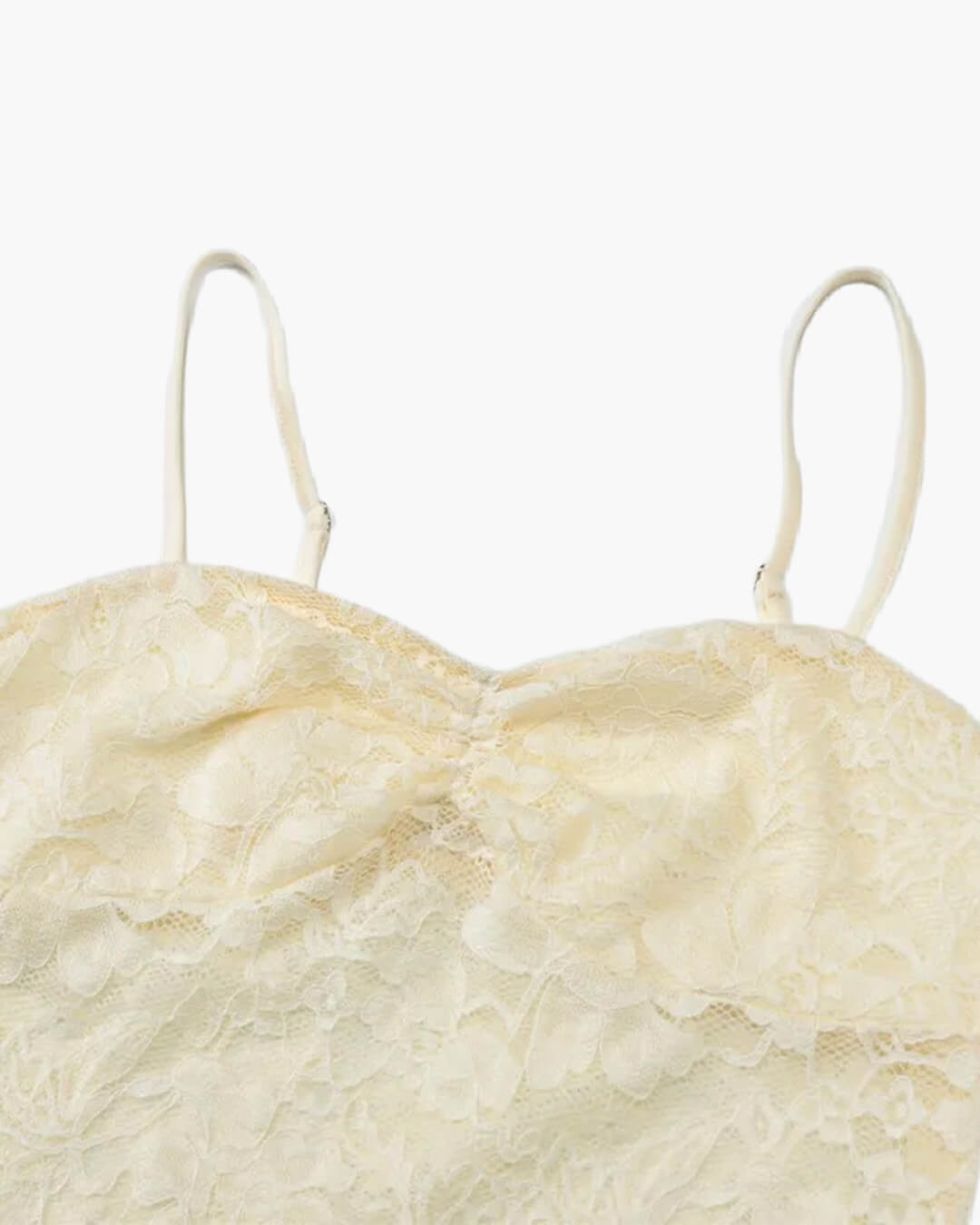 Ten zachwycający damski komplet z koronki składa się z marszczonego topu bandeau typu crop oraz dopasowanej długiej spódnicy z wysokim stanem. Doskonały na imprezy, do klubu lub na wakacyjne wyjścia – łączy elegancję i wygodę.
